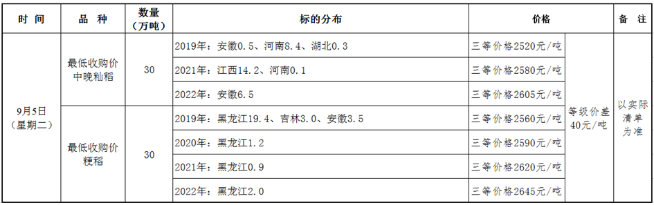 注:销售价格等级差40元/吨;本交易安排为预公告,交易日的实际销售数量以湖北粮网官网发布的交易清单为准。